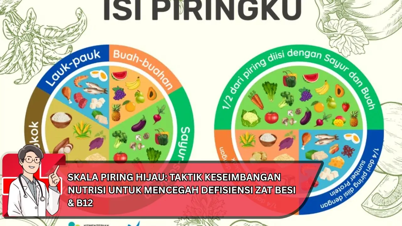 Skala Piring Hijau adalah cara sederhana untuk menyesuaikan porsi makanan harian agar nutrisi tetap lengkap. Piring dibagi menjadi tiga bagian utama: sayuran hijau sebagai sumber serat dan mikronutrien, protein nabati seperti tahu, tempe, dan kacang-kacangan, serta sumber zat besi seperti bayam, kacang lentil, dan biji labu. Dengan menambahkan vitamin C dari buah, penyerapan zat besi meningkat — membantu tubuh menjaga Kesehatan darah dan energi harian.